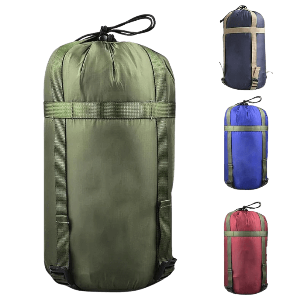 - Nem opbevaring: Den kompakte kompressionspose med snørelukning gør det hurtigt og nemt at pakke soveposen sammen og komprimere den for at spare plads i din rygsæk.